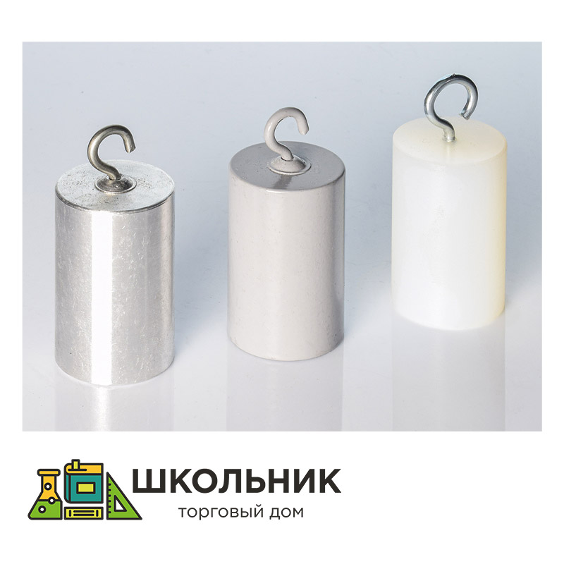 Набор тел равного объема предназначен для определения и сравнения теплоемкости и плотности различных твердых материалов. Содержат 3 тела из различных материалов. Тела представляют собой бруски цилиндрической формы с крючком на одном конце.