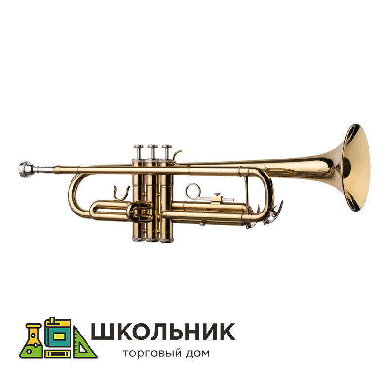 Труба помповая, студенческая модель, цвет "золото", мензура 11,65мм, диаметр раструба 123мм, прозрачнй лак, крюк для подстройки на первом кроне, с одной стойкой на центральном кроне, мундштук и футляр в комплекте Conductor
